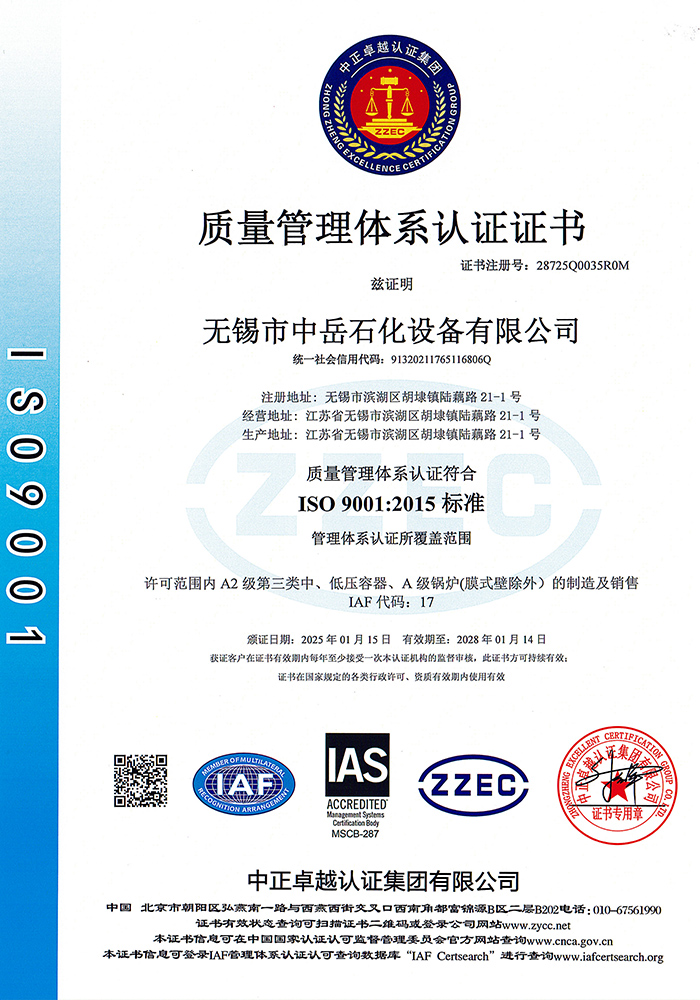 中岳石化下設四個控股子公司——無錫市中岳石化設備有限公司、無錫華凱環境工程有限公司、山西中岳實業有限公司、武漢中岳節能技術有限公司。總部位于經濟發達的長江三角洲,風景秀麗的太湖之濱——無錫市胡埭工業園區。是專業生產石油、化工、醫藥、染料、冶金、環保、焦化等行業用成套設備的專業公司。公司銀行資信等級4A級,公司注冊資金:3080萬,并獲得江蘇省高新技術企業、無錫換熱技術工程裝備中心證書,同時也是國內外主要工程公司設計院的合格供應商。